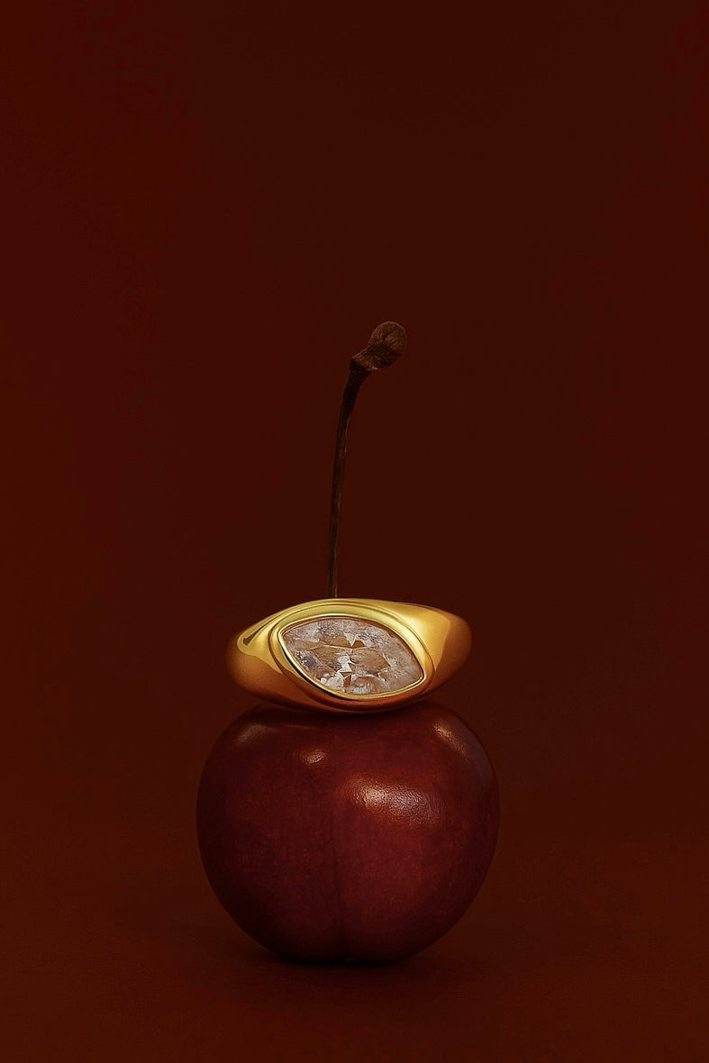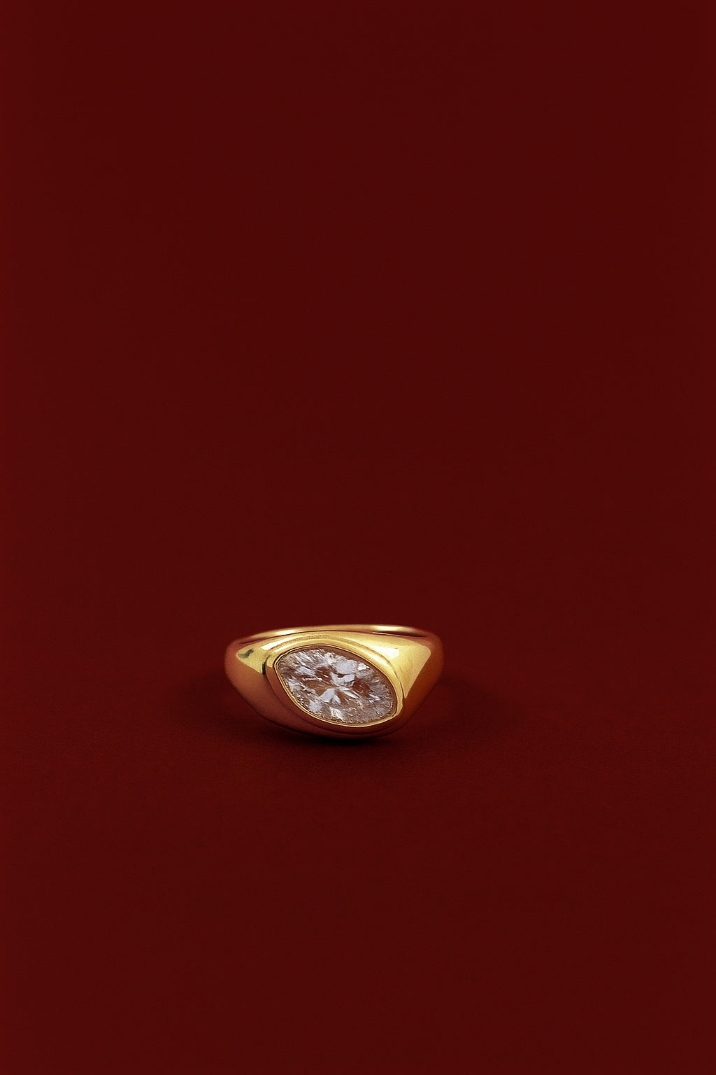 Bold yet refined, this 18ct gold titanium steel ring is a modern statement piece designed for the confident woman who embraces individuality. Crafted with a rich gold finish and a distinctive marquise cut faceted centerpiece, it blends sculptural design with timeless allure.